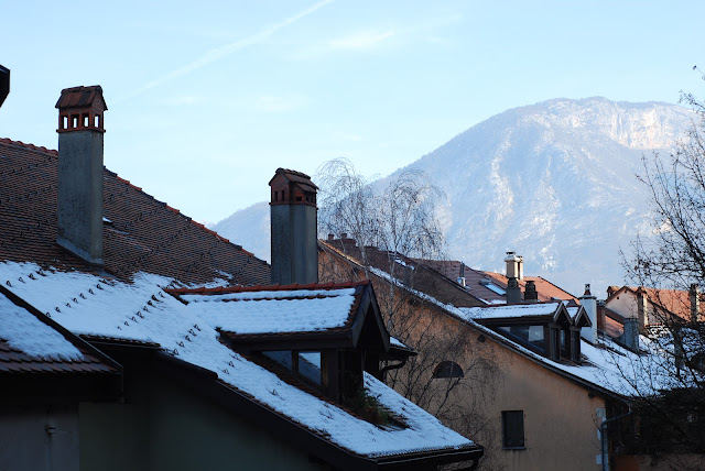 We didn't actually ski here. Instead, we spent two days in the charming French town of Annecy (at the foot of the Alps). Although we didn't ski on this trip (the popular resort of Chamonix is only half an hour from Annecy), I skied the French Alps with my friend A in college, so I think I can still accurately compare.